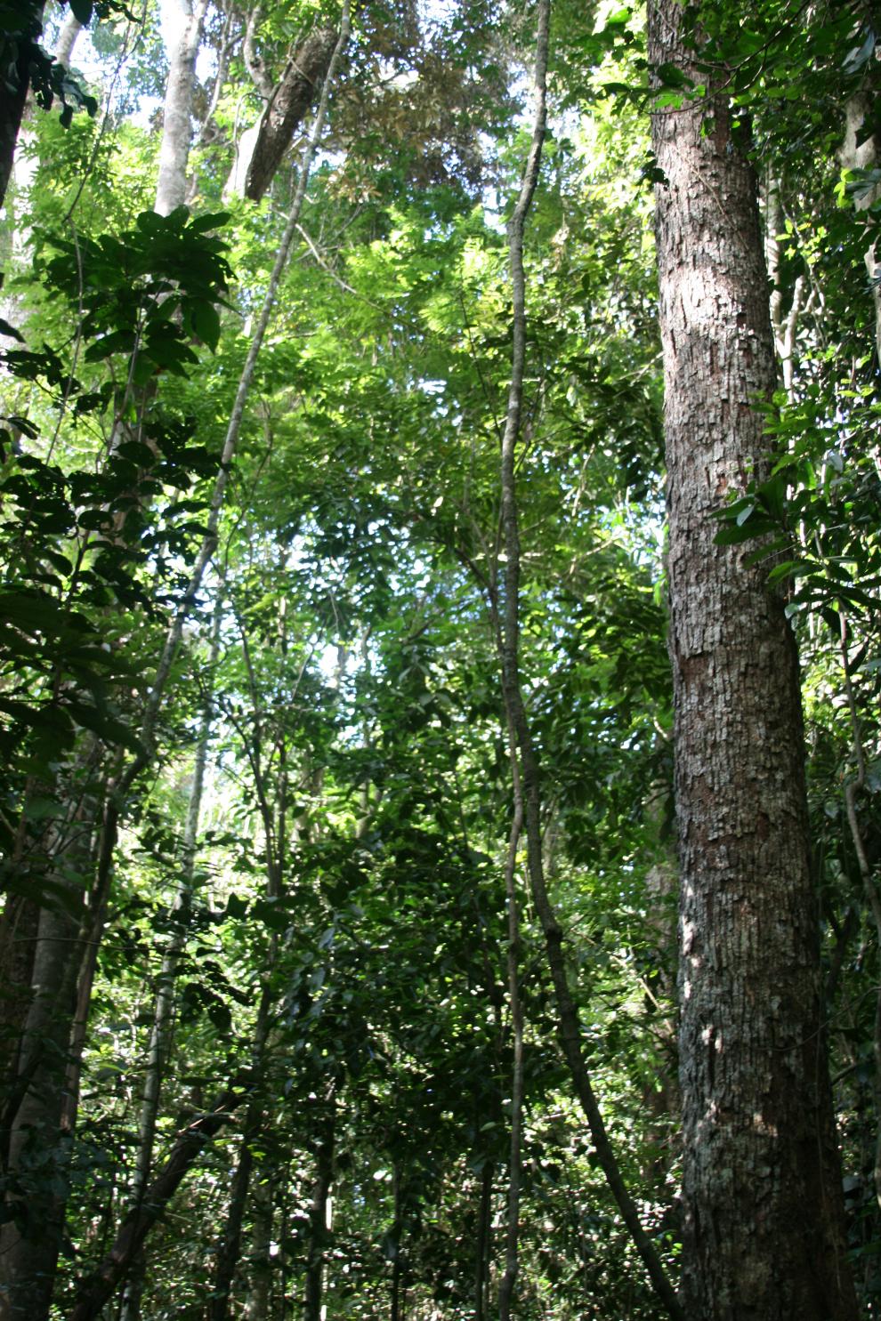 Mabi forest is a type of rainforest that is restricted to a few small remnant patches on the Atherton Tablelands, between the towns of Atherton, Kairi, Yungaburra and Malanda. There is also a small patch located at Shiptons Flat, south of Cooktown. Mabi forest is listed as a Critically Endangered Threatened Ecological Community under Commonwealth legislation. It is also listed as an Endangered regional ecosystem (RE 7.8.3 and RE 7.3.37) under Queensland’s Vegetation Management Act 1999. Thirteen plant and 12 animal species that occur in Mabi Forest are listed as threatened nationally or in Queensland. Around 80% of Mabi forest has been cleared and what remains is highly fragmented, both internally, from roads and clearings, and externally.