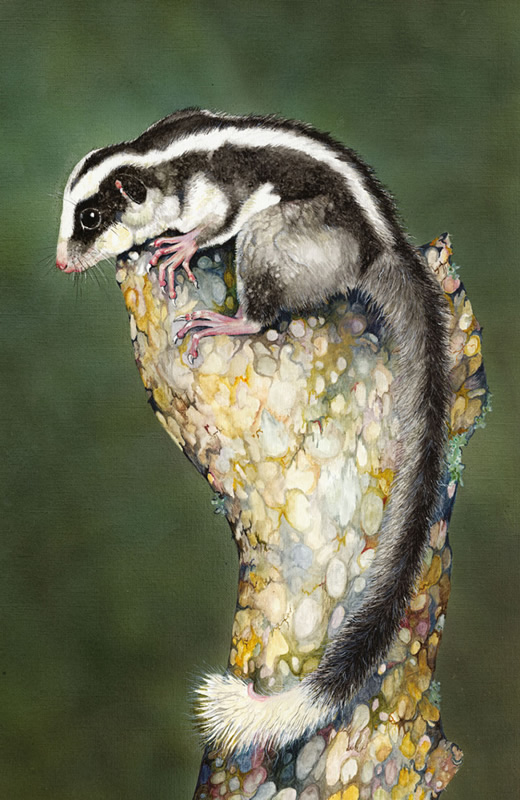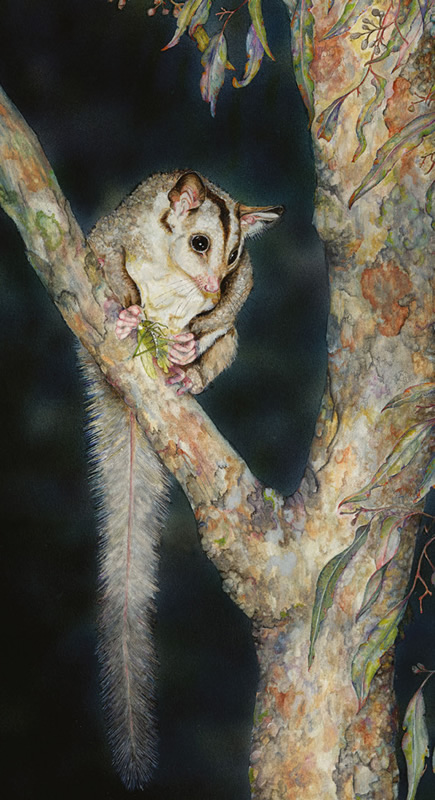 Daryl was born in London and has lived in Australia since 1961. She was educated and raised in South Australia and has lived in north Queensland since 1993. She now works full-time producing original artworks and a range of wildlife cards and prints. Most recently Daryl completed the illustrations for a children’s book about the endangered mahogany glider. Daryl and her husband, Geoff Moffatt, live in the Kennedy Valley and devote much of their time to caring for injured and orphaned native animals. In 2001 Daryl received an Australia Day Award for her work in environmental education, wildlife rescue and her pioneering work in rearing endangered mahogany gliders. She was honoured with a Cassowary Award in 2008. Daryl Dickson