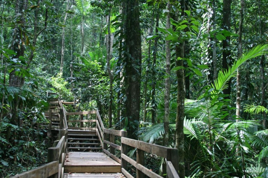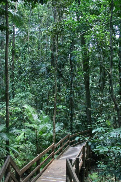 Jindalba is the traditional Kuku Yalanji people's name for this area. This 700 metre rainforest boardwalk circuit winds up the hill and sometimes reaches four metres off the ground. It offers some elevated views of this lowland rainforest, including creeks, king ferns and fig trees. The information signs explain the complexities of rainforest structure and ecological processes - how different species have evolved to survive in the rainforest environment.