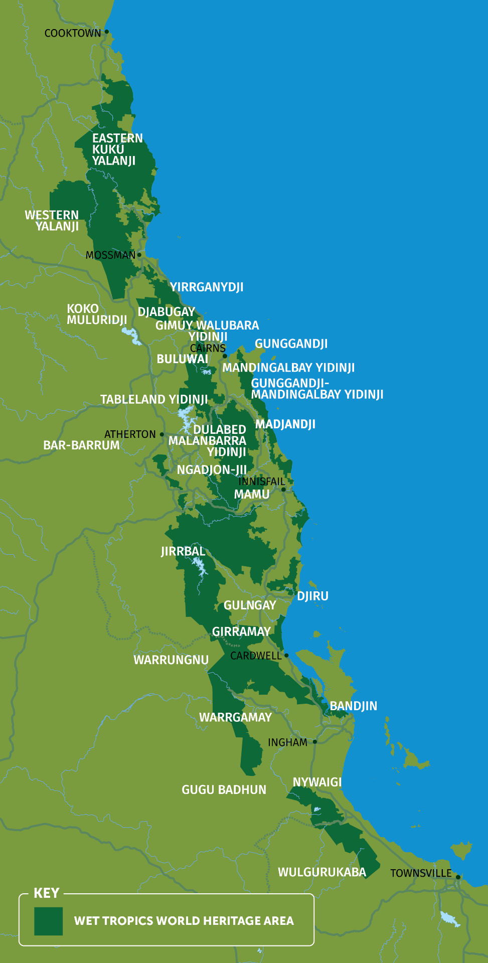 Overlapping Rainforest Aboriginal land interests in the Wet Tropics World Heritage Area include: